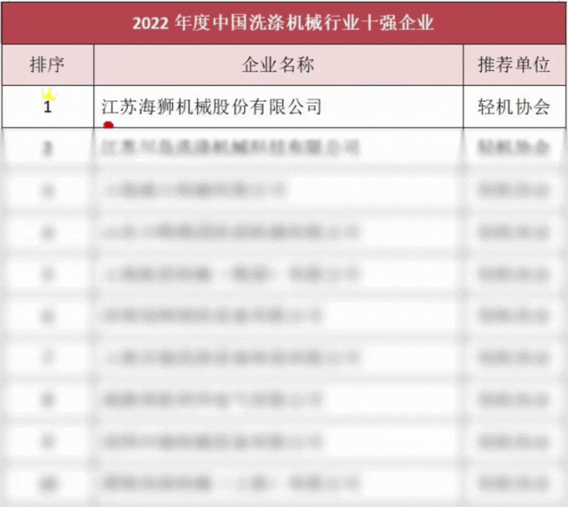同時(shí),由中國輕工機(jī)械協(xié)會推薦,榮獲2022年度中國洗滌機(jī)械行業(yè)十強(qiáng)企業(yè)中,江蘇海獅機(jī)械榮居榜首,繼續(xù)領(lǐng)跑工業(yè)洗滌機(jī)械行業(yè),展現(xiàn)出54年耕耘工業(yè)洗滌機(jī)械行業(yè)的深厚積淀和卓越成績。