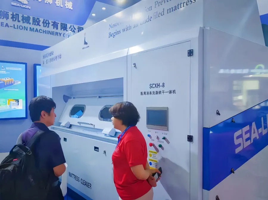 在本次展會(huì)上,海獅機(jī)械成為焦點(diǎn)。本公司擁有獨(dú)家知識(shí)產(chǎn)權(quán)的海獅醫(yī)用床墊一體機(jī)憑借獨(dú)特設(shè)計(jì)和卓越性能,贏得了參會(huì)者的高度贊譽(yù)。這款產(chǎn)品在醫(yī)用領(lǐng)域的獨(dú)特之處在于,它能夠解決醫(yī)院病房床墊難以批量清洗消殺的世紀(jì)難題,解決了醫(yī)用領(lǐng)域消殺全覆蓋的“痛點(diǎn)和盲點(diǎn)”,有效預(yù)防了醫(yī)院交叉感染風(fēng)險(xiǎn)。